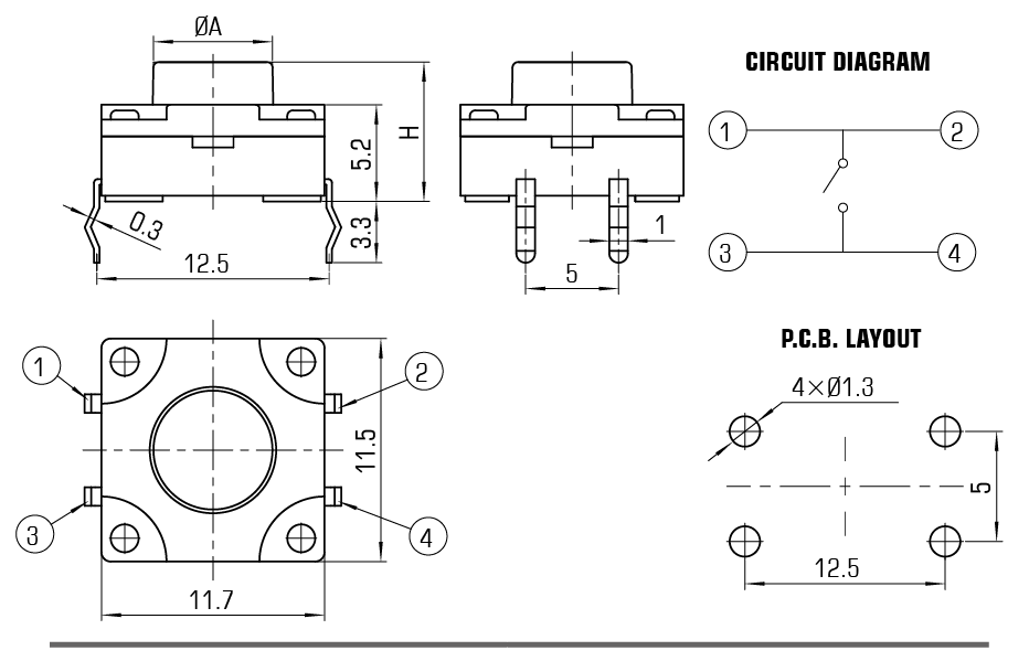 | DIELECTRIC STRENGTH | AC250V for 1 Minute | |