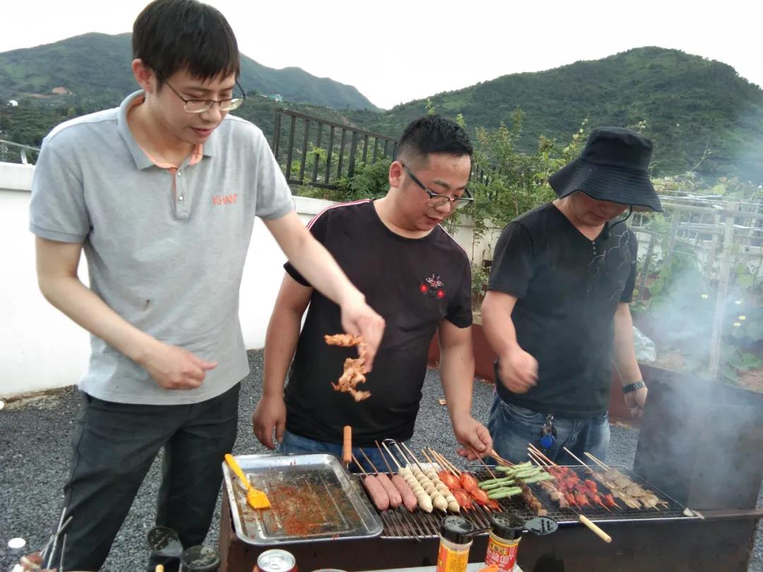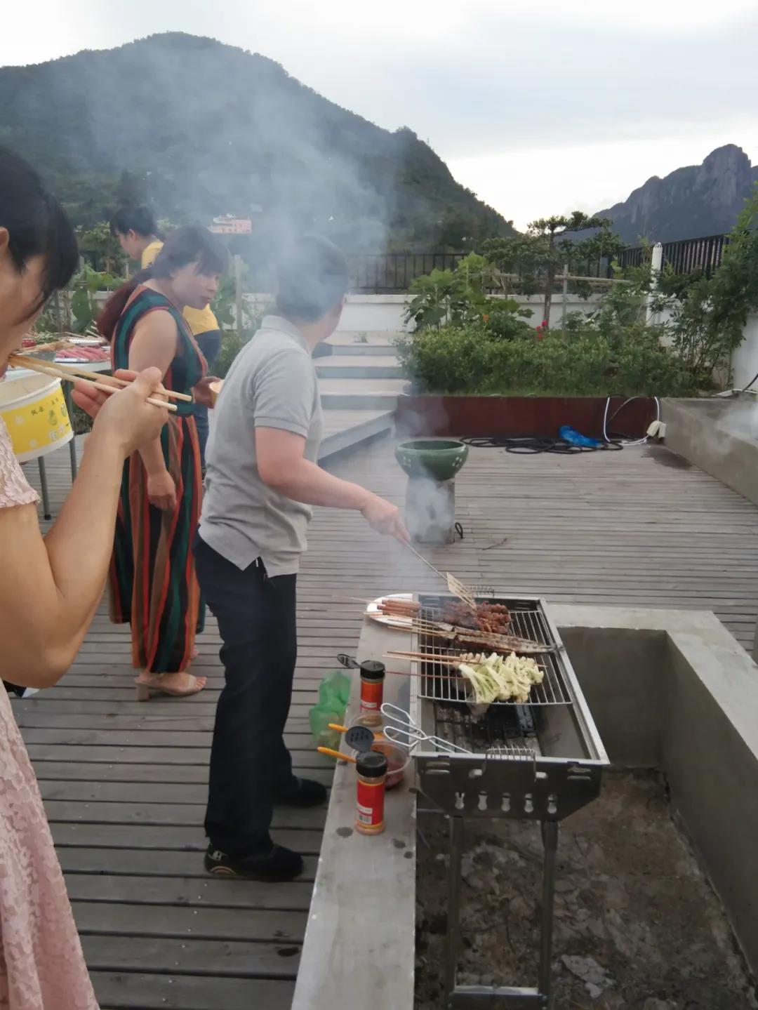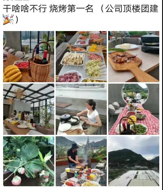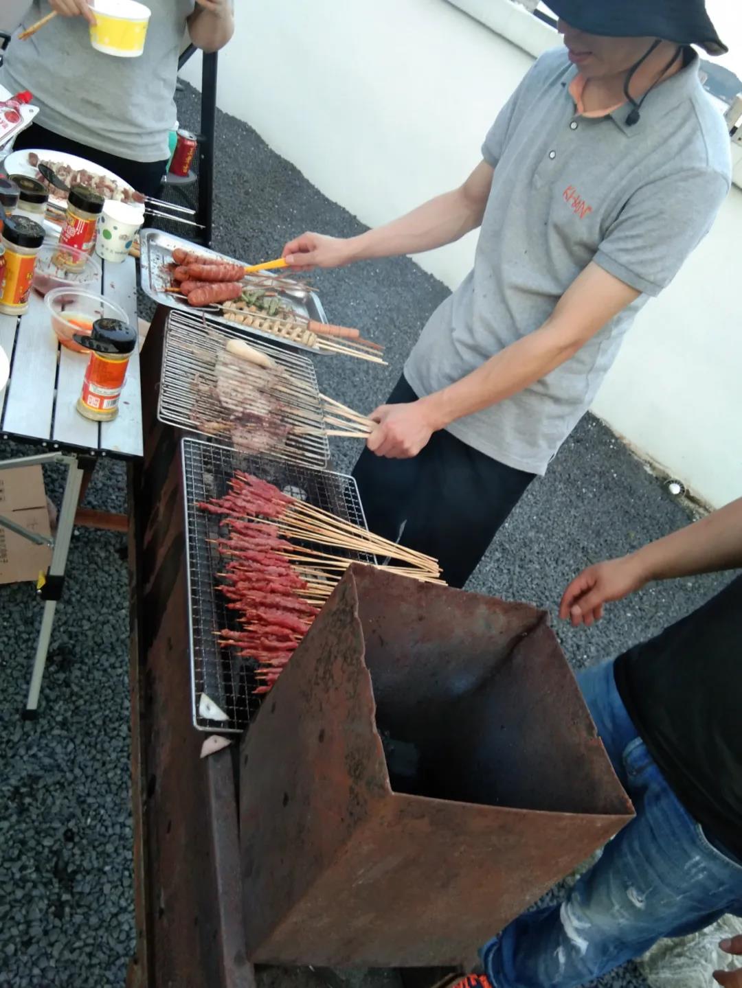 2020年6月13日下午下班后,燒烤活動(dòng)在公司B棟陽(yáng)臺如火如荼地進(jìn)行,那里有陽(yáng)光房、走廊、砂礫、秋千、音樂(lè )、向日葵、玫瑰、草莓、茄子、黃瓜等,應有盡有。